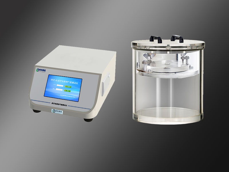 采用壓差法測試原理與液位分析技術(shù)相結(jié)合的測試方法;試驗中,首先將真空室內(nèi)腔注滿水,蓋上密封板,然后在計量筒內(nèi)緩慢的注水至指定的區(qū)域,蓋好上蓋,壓緊密封板,同時對試驗腔進行抽真空至試樣膨脹,最后通過液位分析及相關(guān)計算,得出包裝袋內(nèi)殘余的(氧)氣體量。