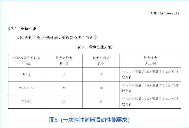1、一次性無菌注射器滑動性能檢測要求,見圖5