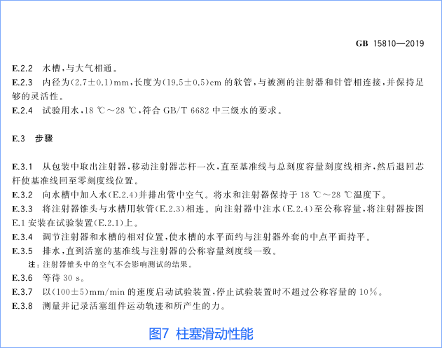 一次性無菌注射器滑動性能試驗方法見圖6、圖7、圖8(GB15810-2019一次性無菌注射器國家標(biāo)準(zhǔn)中的附錄F)。