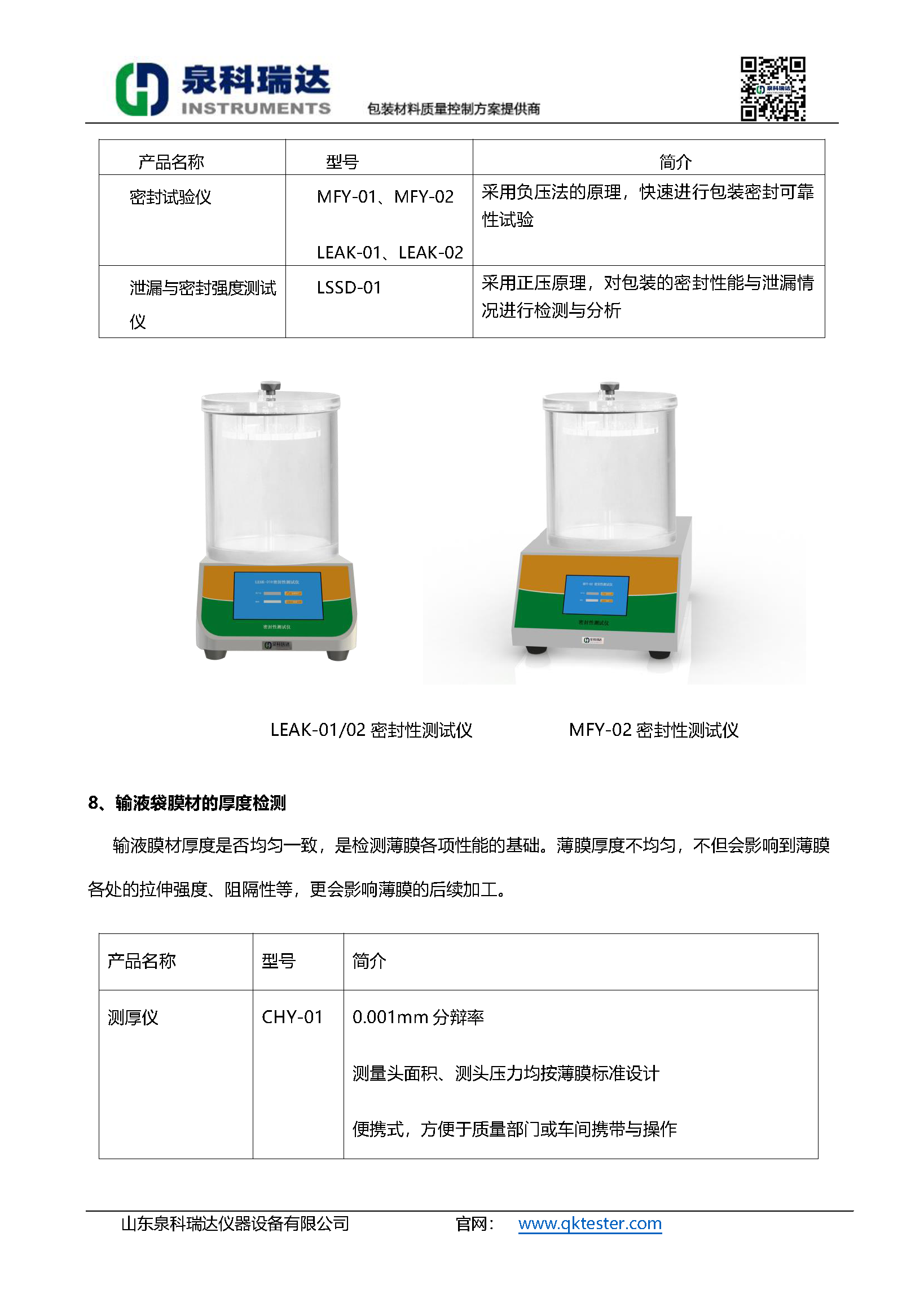 輸液用膜袋檢測(cè)儀器配置方案|泉科瑞達(dá)儀器