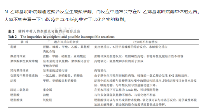 2、原料在生產(chǎn)與儲(chǔ)存的過程中可能會(huì)引入一些雜質(zhì),研究其雜質(zhì)產(chǎn)生的機(jī)理,在一定程度上可以為原輔料相容性實(shí)驗(yàn)設(shè)計(jì)輔料的選擇上提供依據(jù),比如說原料中某一雜質(zhì)易于與過氧化物發(fā)生反應(yīng),我就需要格外關(guān)注輔料中存在過氧化物殘留的輔料,如聚維酮;原料的某一雜質(zhì)易于被金屬離子所催化,含有金屬離子或者存在金屬離子殘留的化合物就需要格外的關(guān)注,如硬脂酸鎂,硬脂酸鈣等。